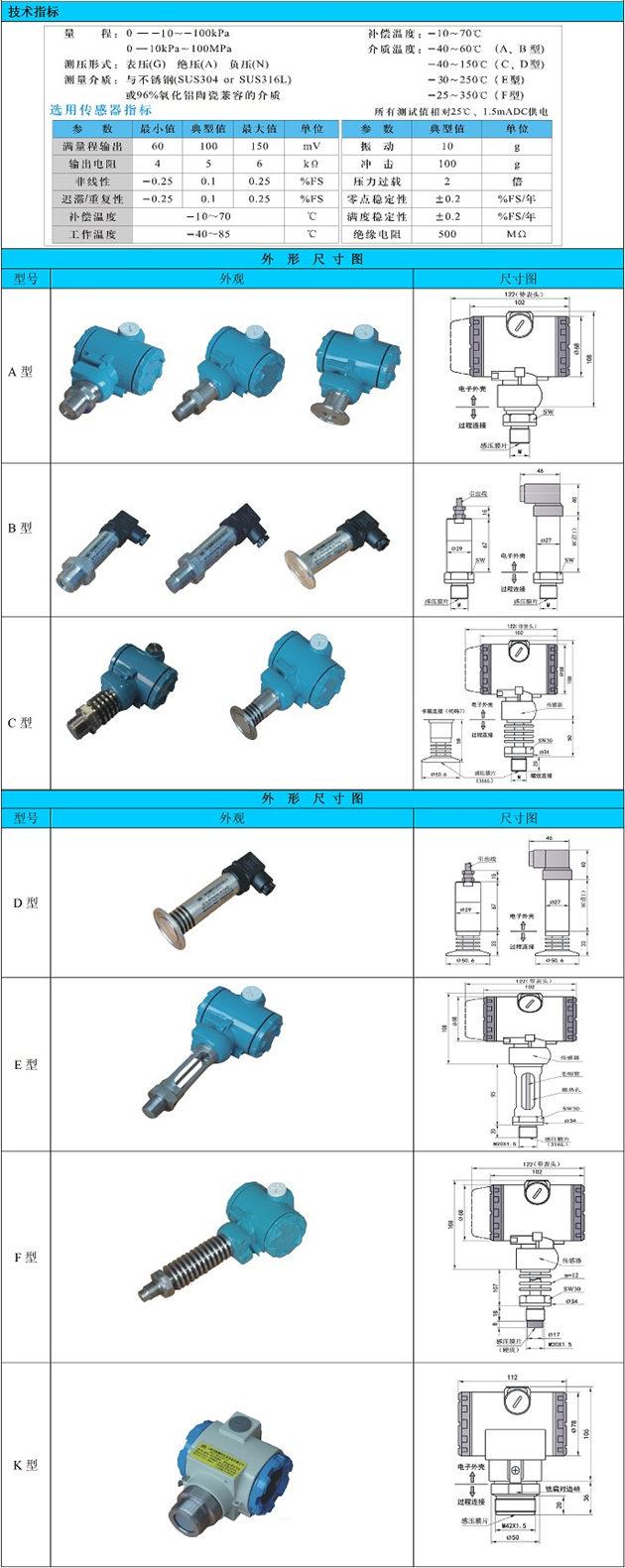 wp435型無(wú)腔壓力變送器選用進(jìn)Kou高精度、高穩(wěn)定性防的芯片組裝,采用激光焊接工藝將芯片與不銹鋼外殼焊接在一起,無(wú)壓力腔體,適用于各種易堵塞、要求保持衛(wèi)生、便于清洗或無(wú)菌環(huán)境的壓力測(cè)量和控制。該產(chǎn)品具有較高的工作頻率,適于動(dòng)態(tài)測(cè)量。